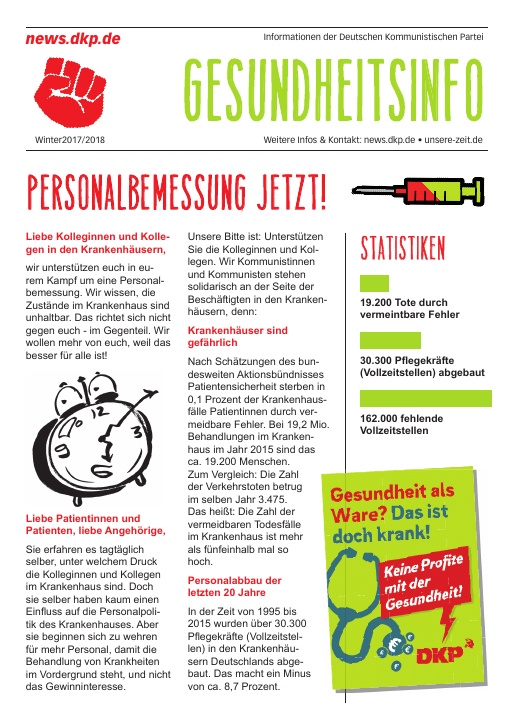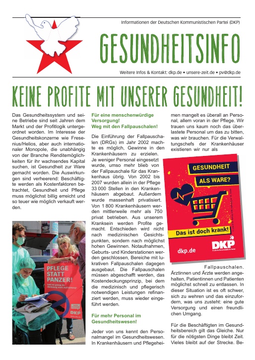 DKP-Information Gesundheits-Info 2021: Keine Profite mit der Gesundheit! (PDF, 3.43 MB)