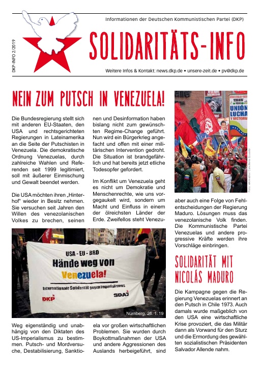 DKP-Information Ostdeutschland: Forderungen der DKP für Ostdeutschland. Für Frieden, Arbeit, Solidarität! Gegen die Delegitimierung der DDR  (PDF, 0.76 MB)