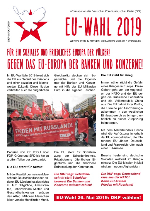 DKP-Information EU-Wahl 2024: Alles für den Krieg? Nichts für uns! (PDF, 3.27 MB)