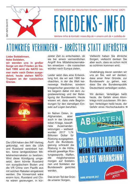 DKP-Information Friedens-Info: NATO, USA und Deutschland - Jetzt atomar abrüsten!  (PDF, 2.61 MB)