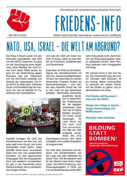 DKP-Information Friedens-Info: Krieg beginnt hier - Widerstand auch! (PDF, 3.36 MB)